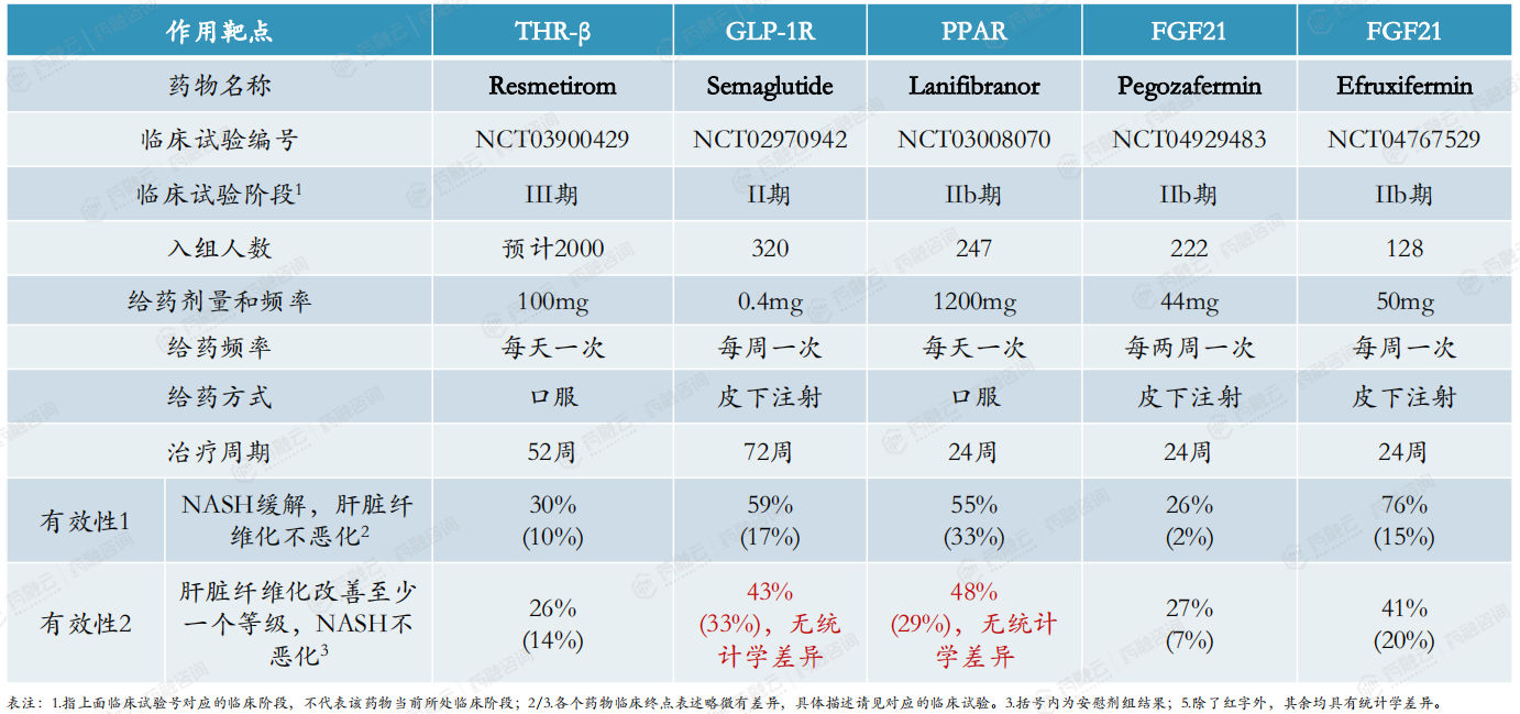 五、NAFLD/NASH在研热门靶点及重点产品临床试验追踪