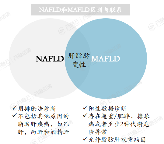 2020年一个国际专家小组达成共识,用代谢性相关脂肪肝病(MAFLD)来替代NAFLD,改用肯定性的诊断标准。对于存在脂肪肝证据的患者,只要合并超重/肥胖、2型糖尿病、代谢功能障碍等任一条件即可诊断为MAFLD。
