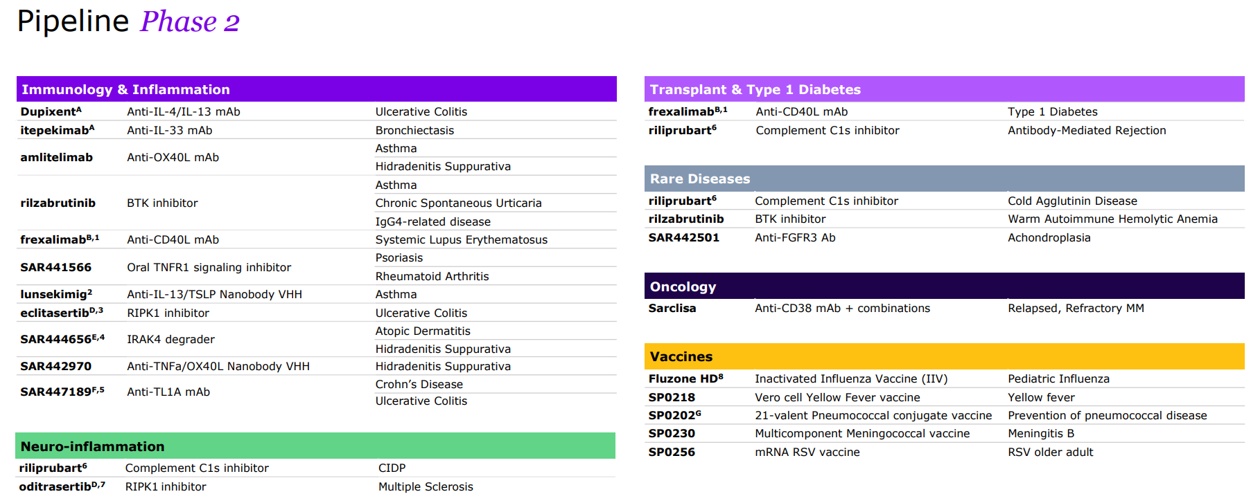 Frexalimab:由于2期研究数据未达到“必要的疗效结果”,赛诺菲暂停开发治疗Sjögren综合征的CD40L抗体药物Frexalimab。不过,Frexalimab其他适应症不会受影响,公司继续进行多发性硬化症和继发性进展性多发性硬化症(SPMS)的3期试验,以及1型糖尿病和系统性红斑狼疮的2期试验。
