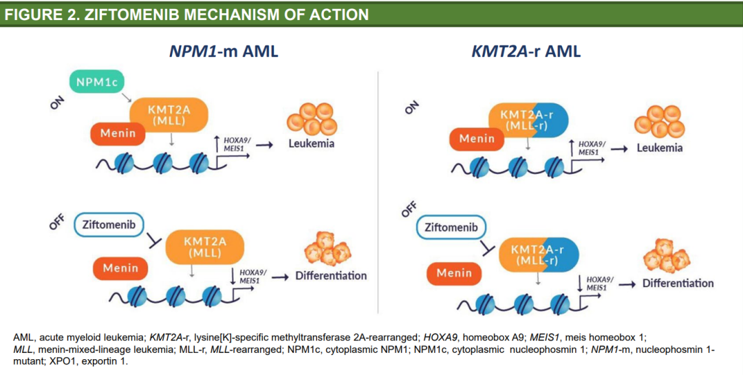 在临床前模型中,ziftomenib抑制了KMT2A/MLL蛋白复合体,并表现出强大的抗白血病活性。
