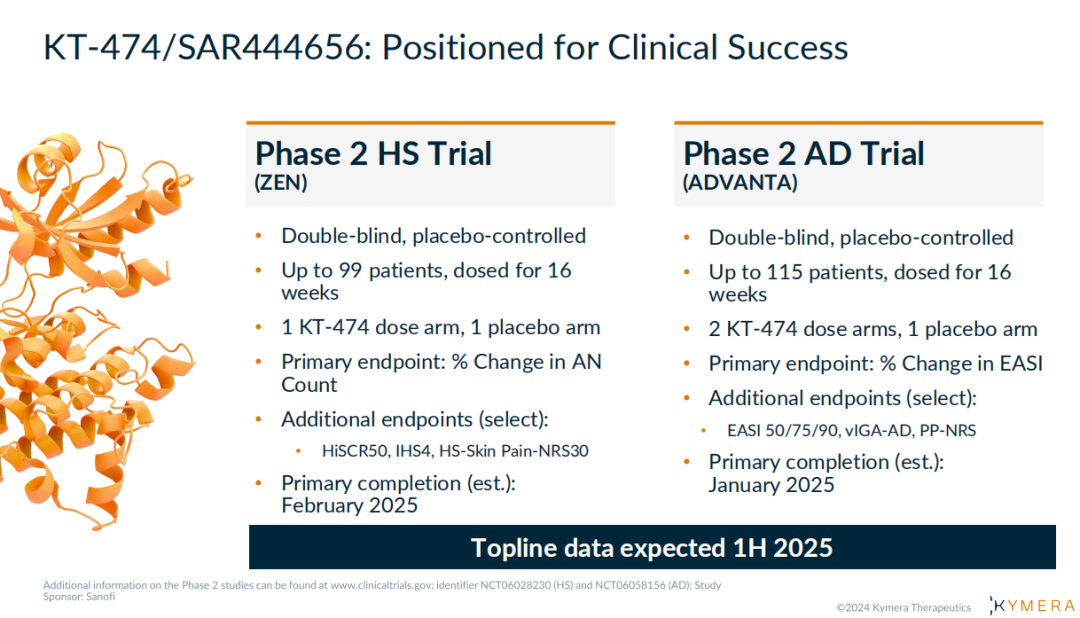 1期临床试验结果显示KT-474在化脓性汗腺炎(HS)和特应性皮炎(AD)患者中具有令人信服的数据和早期概念验证。