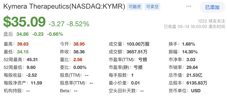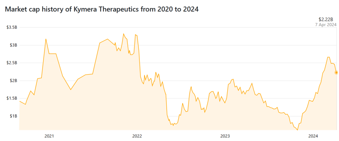 2024年1月9日,Kymera宣布完成2.75亿美元的公开募股。截至2024年1月9日,Kymera拥有约7.45亿美元的现金、现金等价物和投资资产,预计将现金跑道延长至2027年上半年。除了支持现有临床项目之外,Kymera还将继续寻找加速增长和扩大其产品线、技术和临床适应症的机会。截至2024年5月,Kymera Therapeutics市值约21.53亿美元。