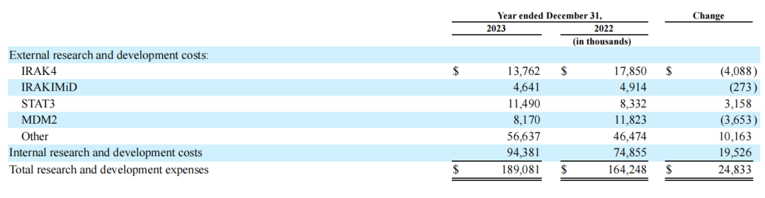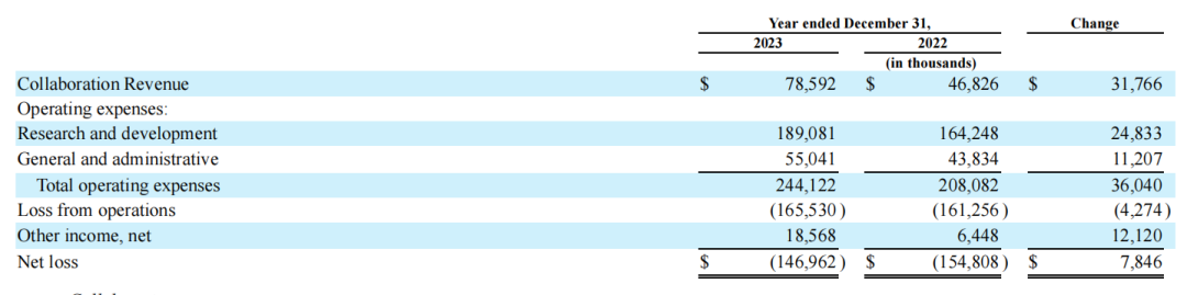 2023全年,Kymera公司总合作收入为7860万美元,包括来自Vertex的840万美元和来自赛诺菲的7020万美元。(Kymera曾在2019年与Vertex达成为期4年的研发合作)而2022年合作收入为4680万美元。2023全年研发费用为1.891亿美元,一般及行政开支为5500万美元。