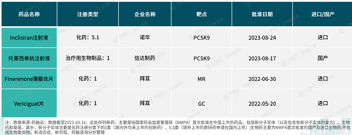 2022年以来,中国心血管系统迎来了4款新药的上市,分别是诺华的Inclisiran注射液、信达制药的托莱西单抗注射液、拜耳的Finerenone薄膜衣片及Vericiguat片,凸显了国内心血管疾病治疗领域的进步。值得注意的是,这四款新药中仅托莱西单抗注射液为中国自主研发产品。