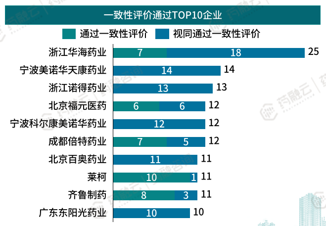 尤其是浙江华海药业,以35个一致性评价申请,25个一致性评价通过占据榜首。