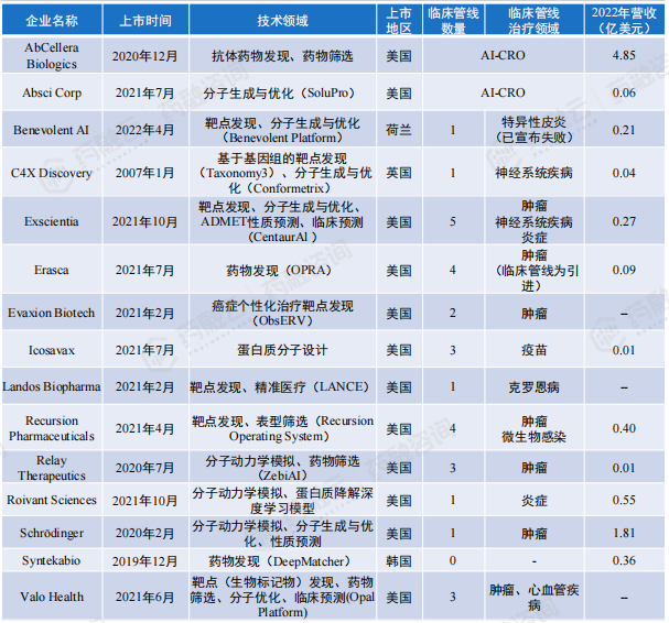 全球AI制药上市企业信息汇总