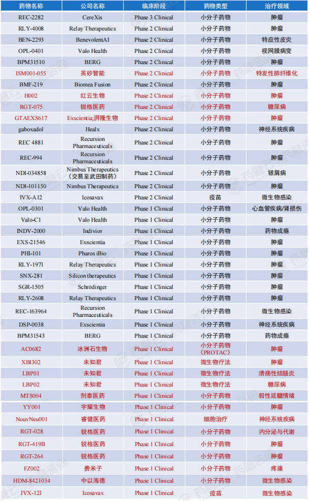 全球AI制药企业临床管线汇总