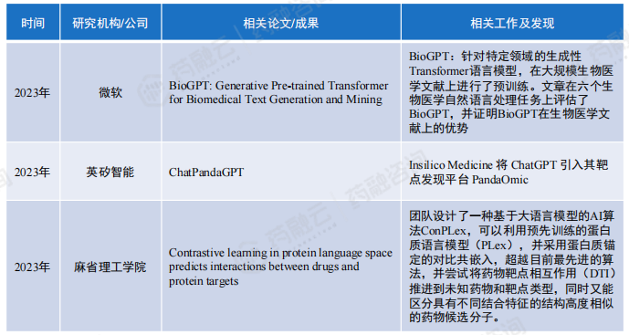 基于大型语言模型的聊天功能,如微软的BioGPT和Insilico Medicineiv的ChatPandaGPT,通过对从数百万论文中提取的大量文本数据进行预训练,可以将疾病、基因和生物过程联系起来,从而快速识别疾病发生和进展的生物学机制,并发现潜在的药物靶点和生物标志物。