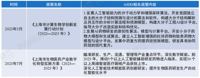 上海市部分AIDD行业产业政策