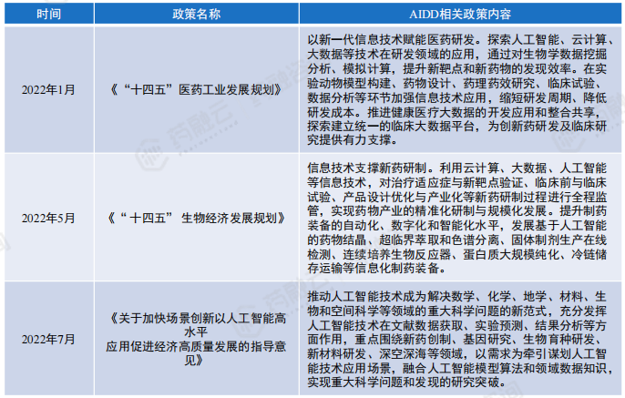 国内AIDD行业相关宏观政策(含草案)汇总
