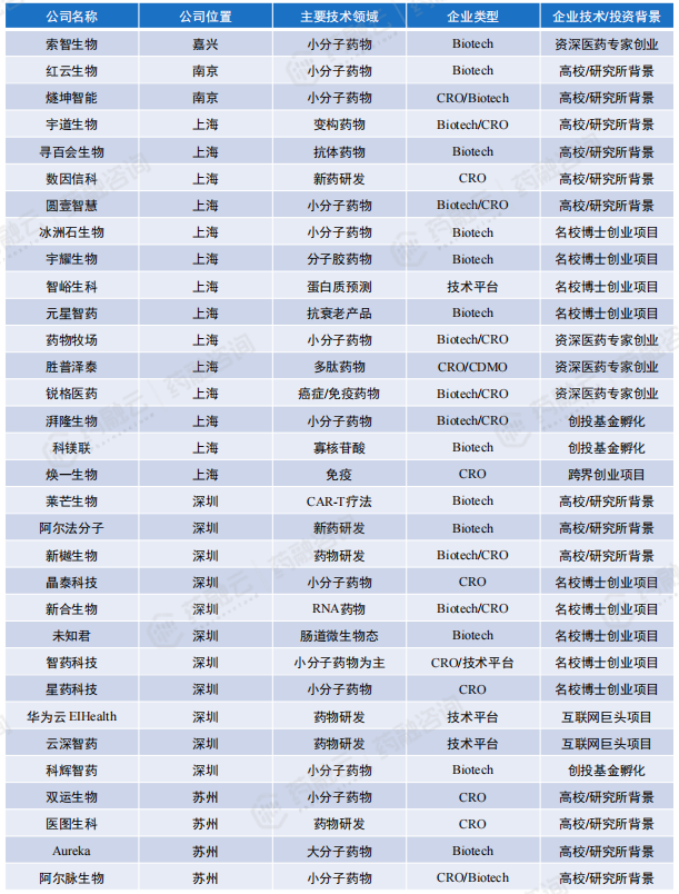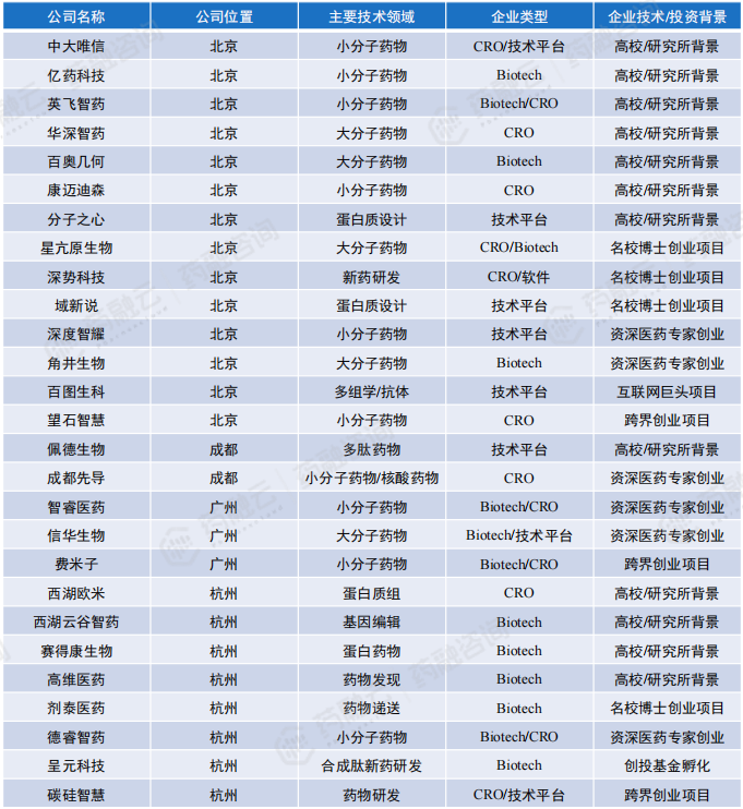 国内主要布局AI药物分子发现、设计、优化初创企业汇总