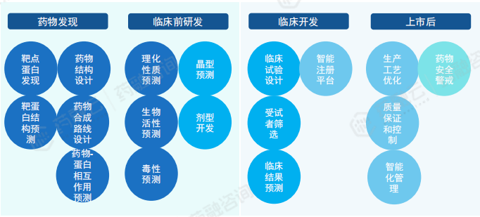 AI赋能药物开发多集中在药物发现阶段,临床试验阶段应用或为AI带来新方向。