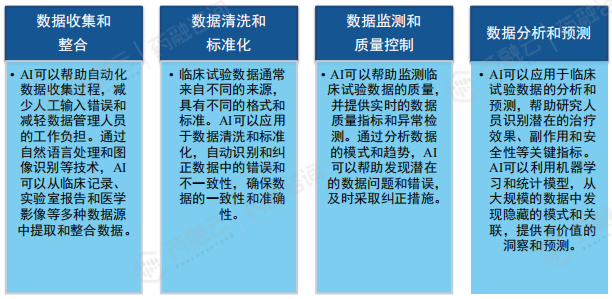 在临床试验中,AI可以帮助优化试验设计、招募适合的患者群体,并提供数据分析和预测,加快药物上市进程。此外,AI还可以应用于药物生产中的质量控制、流程优化和智能化管理等方面,提高药物的生产效率和质量。