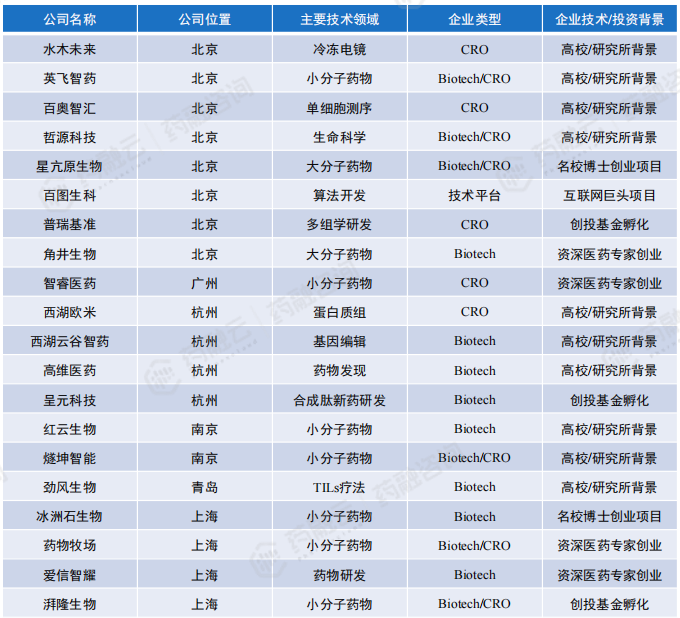 国内主要布局AI药物靶点发现与验证初创企业汇总