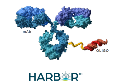 AOC-1001采用Avidity 的HARBOR平台技术制造,抗体部分为Fc端沉默的TfR1 人源化IgG1抗体,连接子为不可裂解型MCC,核酸部分为DMPK ASO。