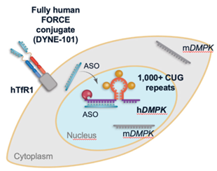 DYNE-101采用Dyne 的FORCE平台技术制造,抗体部分为TfR1 Fab,连接子根据专利推测为可裂解型MC-Val-Cit,核酸部分为DMPK ASO。