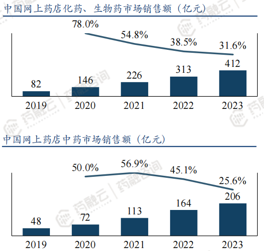 特别是化药和生物药领域,2023年网上药店市场销售额达到412亿元,增速32%。大数据表明,线上渠道正以前所未有的速度扩张,成为药企触达消费者的新增长极。中药在线上同样增长25.6%,销售额达到206亿元。
