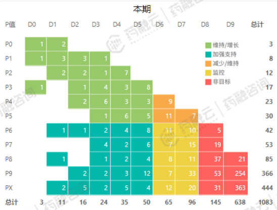 比如P0-D0就是该医院市场大,而且客户的产品市场份额也大,就需要维持。P9-D0就代表该医院市场大,但是客户产品的市场份额小,就需要加强支持。