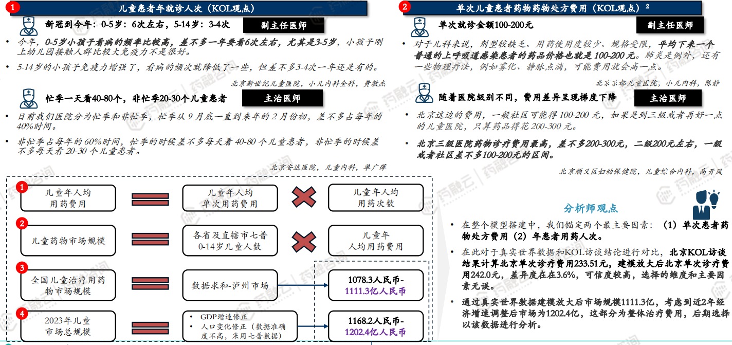 案例分析2:通过医疗大数据和KOL访谈,预估整体儿童用药市场规模约1202亿人民币