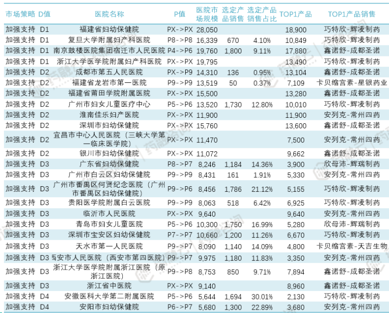 D值是某一家医院某类药物的整体市场,D0最大D9最小。P值是客户企业产品在这家医院的市场占比,P9代表占比小,P0代表占比大。