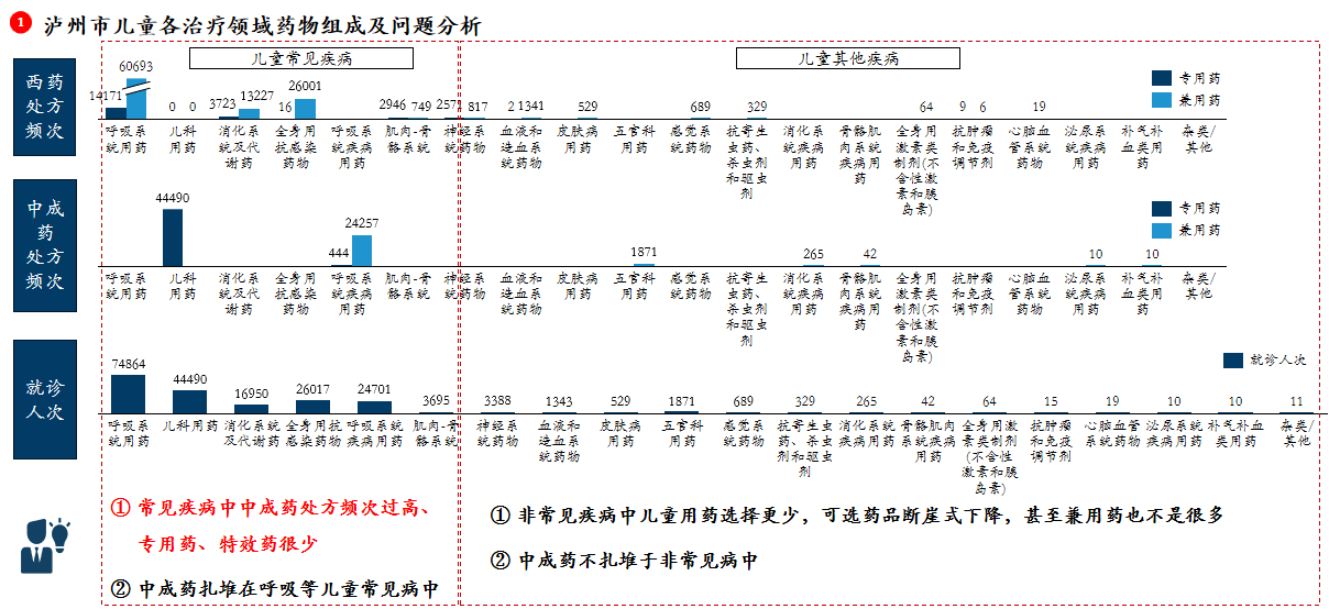 儿童常见疾病:常见疾病中中成药处方频次过高、专用药、特效药很少。中成药扎堆在呼吸等儿童常见病中。