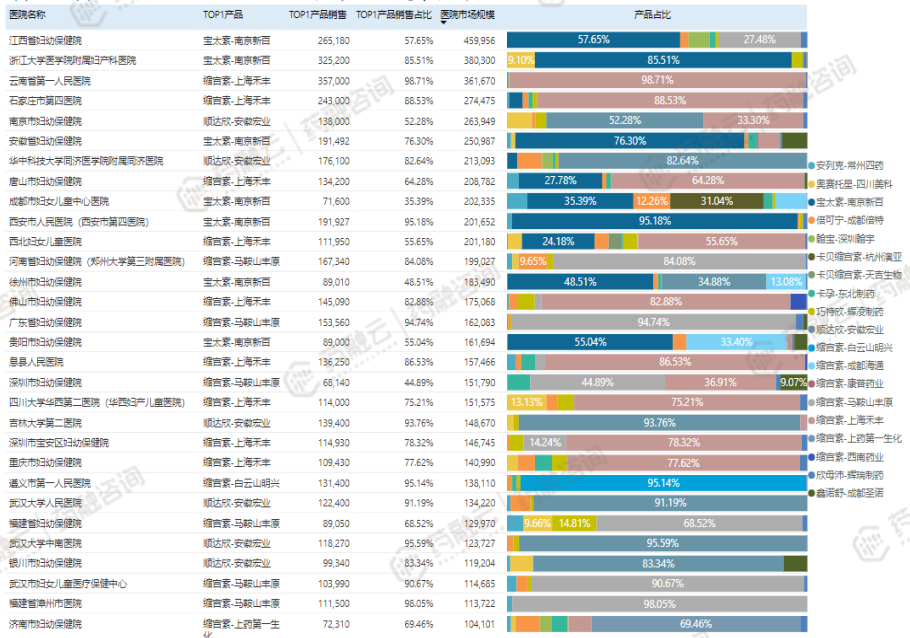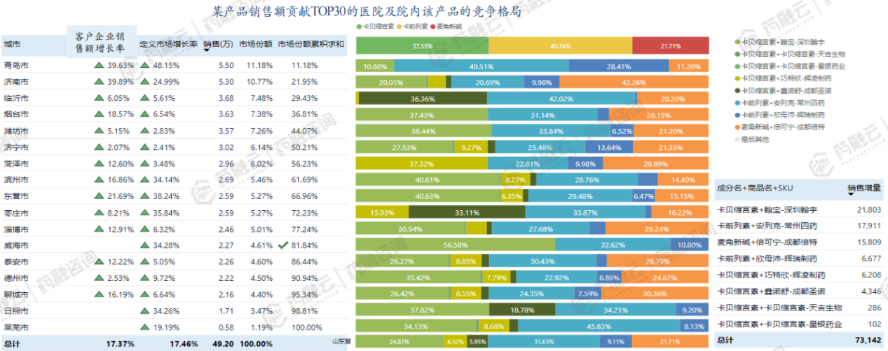 某产品销售额贡献TOP30的医院及院内该产品的竞争格局