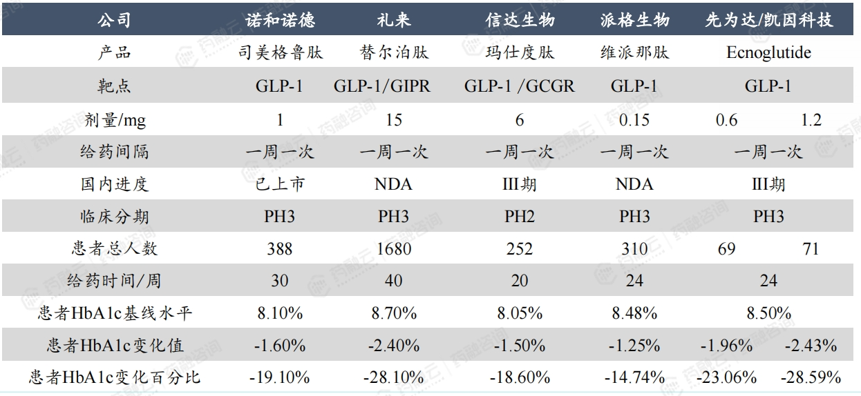国内糖尿病领域,几款进度最快的 GLP-1药物临床数据对比