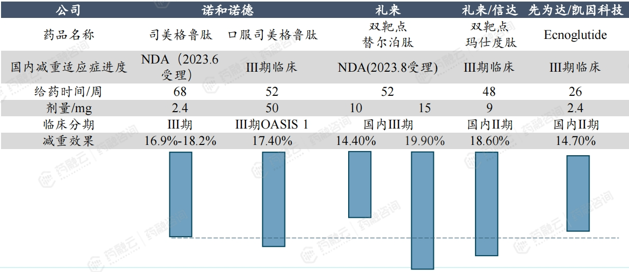 国内减重领域,几款进度最快的 GLP-1药物临床数据对比图片