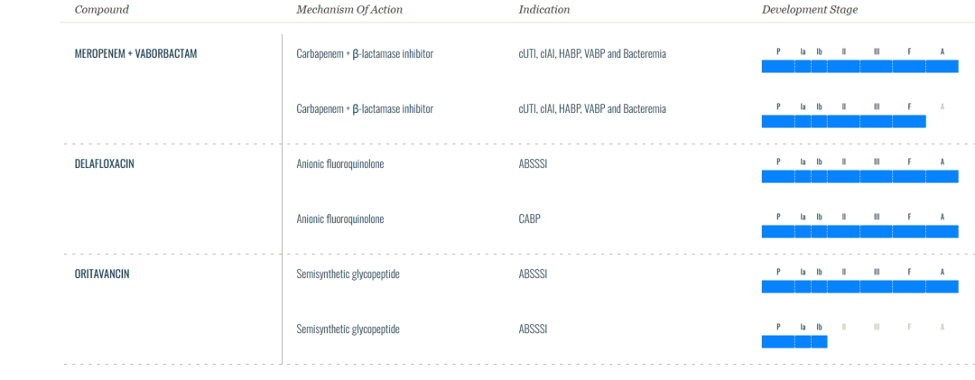 德拉沙星是一种阴离子氟喹诺酮类药物(FQ),与其他氟喹诺酮类药物相比,具有更好的特性和安全性。它通过平衡抑制细菌DNA复制、转录、修复和重组所需的细菌拓扑异构酶IV和DNA回旋酶(拓扑异构酶II)发挥作用。目前已在美国和欧盟获批用于治疗成人急性细菌性皮肤和皮肤结构感染(ABSSSI);在美国用获批于治疗社区获得性细菌性肺炎(CABP);2021年4月,在欧盟被批准用于治疗CABP。