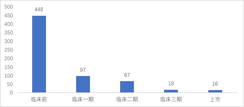 截至2024年5月31日,全球有16个mRNA药物产品获批上市,基本全是针对呼吸病毒感染的疫苗产品,又以新冠病毒疫苗为主(15个)。整体来看,mRNA药物管线已有646个,其中18个药物进入临床三期,67个处于临床二期,97个处于临床一期,69%(448个)还处于临床前阶段。