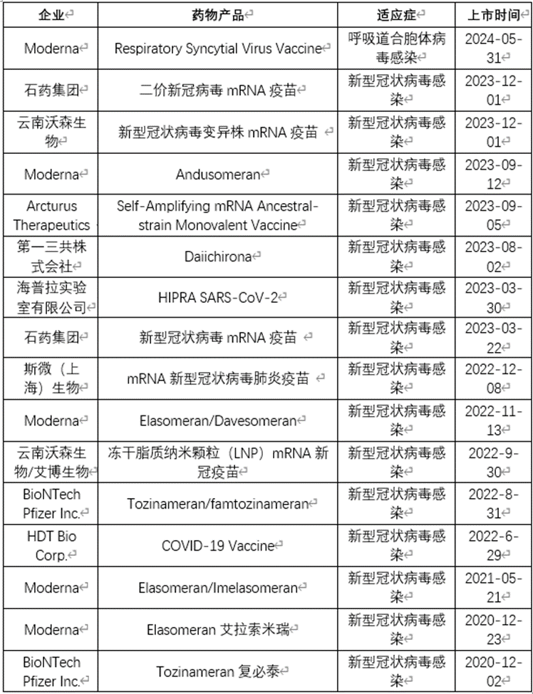 全球已上市mRNA疫苗药物名单