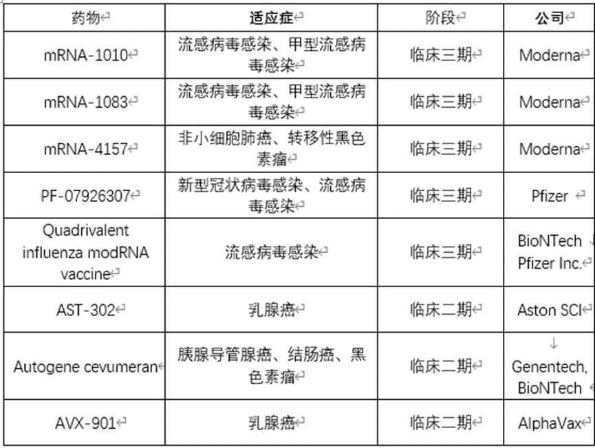 全球研发进展较快的非新冠mRNA药物