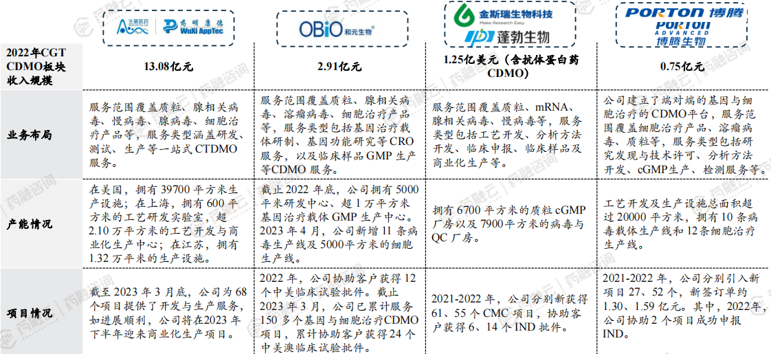 CGT CDMO领域国内外的主要公司: