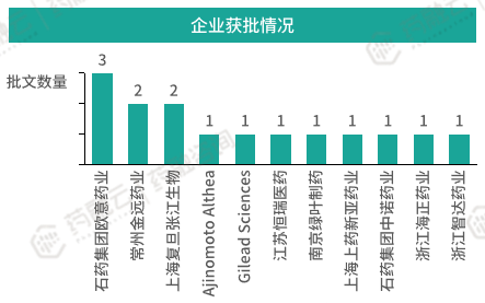 其次是盐酸伊立替康脂质体注射液和注射用两性霉素B脂质体,均拥有两条批文;然后是布比卡因脂质体注射液、盐酸米托蒽醌脂质体注射液、注射用紫杉醇脂质体,分别拥有一条批文。从企业获批数量来看,石药集团排名第一。