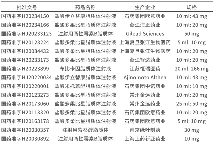 一、中国上市脂质体注射剂药物批文情况