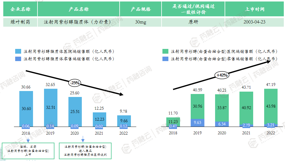 市场竞争情况:注射用紫杉醇脂质体(商品名:力扑素®),由绿叶制药自主研发,是全球首个及唯一获批上市的紫杉醇脂质体产品,目前仍处于活跃状态脂质体注射液中最早上市的产品。