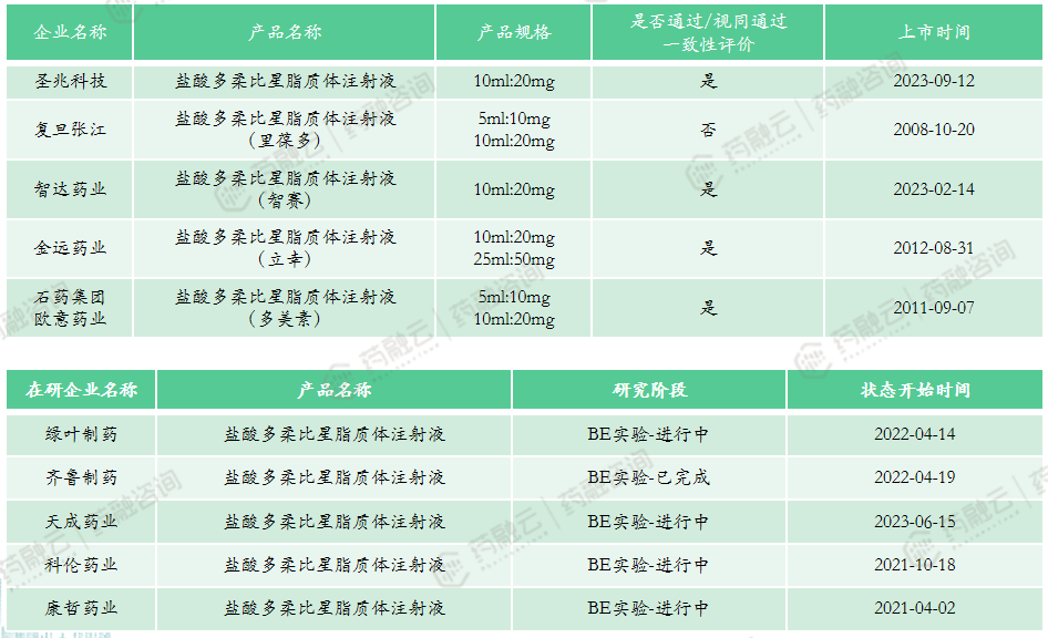 盐酸多柔比星脂质体注射液由于可实现药物的增效减毒、定向聚集和精准治疗,成为全球仿制开发的热点品种之一。FDA在2013年批准了Doxil首款仿制药,由印度最大仿制药公司Sun Pharmaceutical开发,商品名Lipodox。Doxil/Caelyx在2003年经安杨森引入中国市场,但在2015年注册证号到期后未进行再注册。