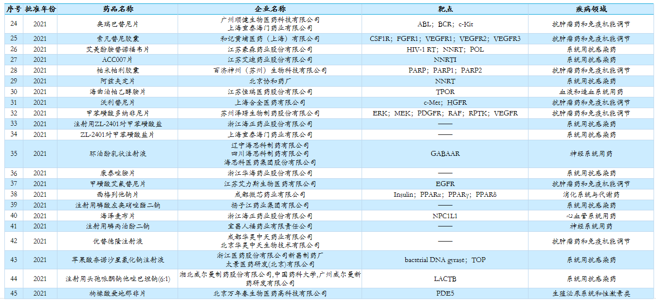 2021年批准上市Ⅰ类新药(化学药)
