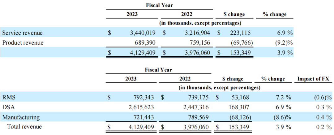按照收入类型,Charles River全年服务类收入为34.4亿美元,同比增长6.9%,产品类收入为6.89亿美元,同比减少9.2%。