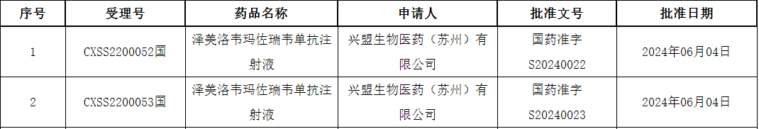 2024年6月12日,中国国家药监局(NMPA)官网公示,由兴盟生物申报的1类新药泽美洛韦玛佐瑞韦单抗注射液上市申请已获得批准。泽美洛韦玛佐瑞韦单抗是一款抗狂犬病病毒单克隆抗体组合制剂——单抗鸡尾酒疗法产品,主要用于成人狂犬病病毒暴露者的被动免疫。同时,这也是中国第93款获批的抗体新药。