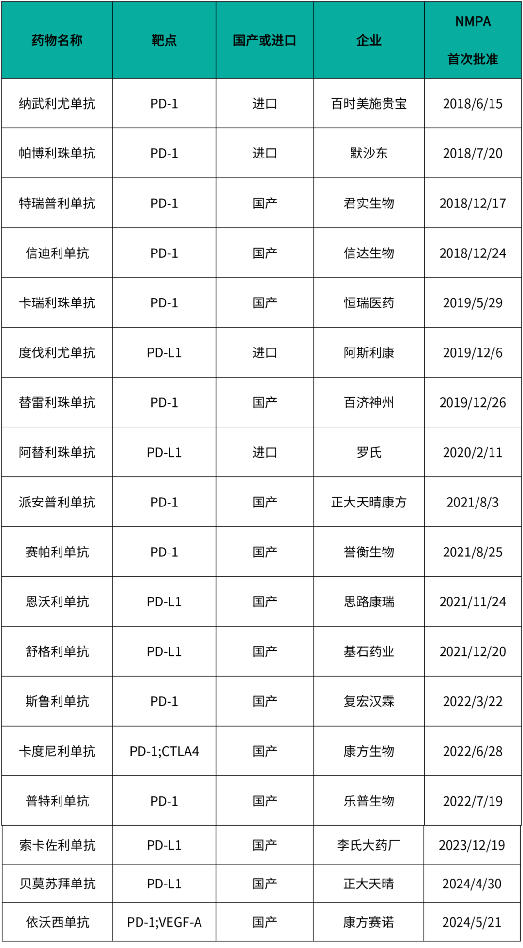 18款国内已上市的PD-(L)1抗体