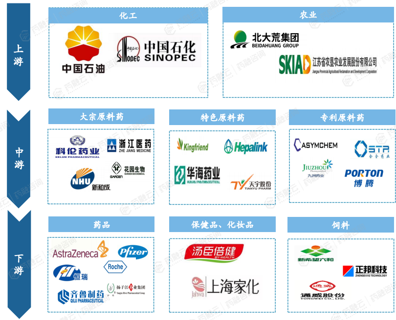 原料药产业链涵盖了上游的基础化工和农林牧渔业,主要包括基础化工、植物种植、动物养殖和部分医药中间体制备等;中游的原料药生产,即通过化学合成、动植物提取、微生物发酵或其他现代生物技术等制备得到原料药;以及下游的化学制剂生产等多个环节。