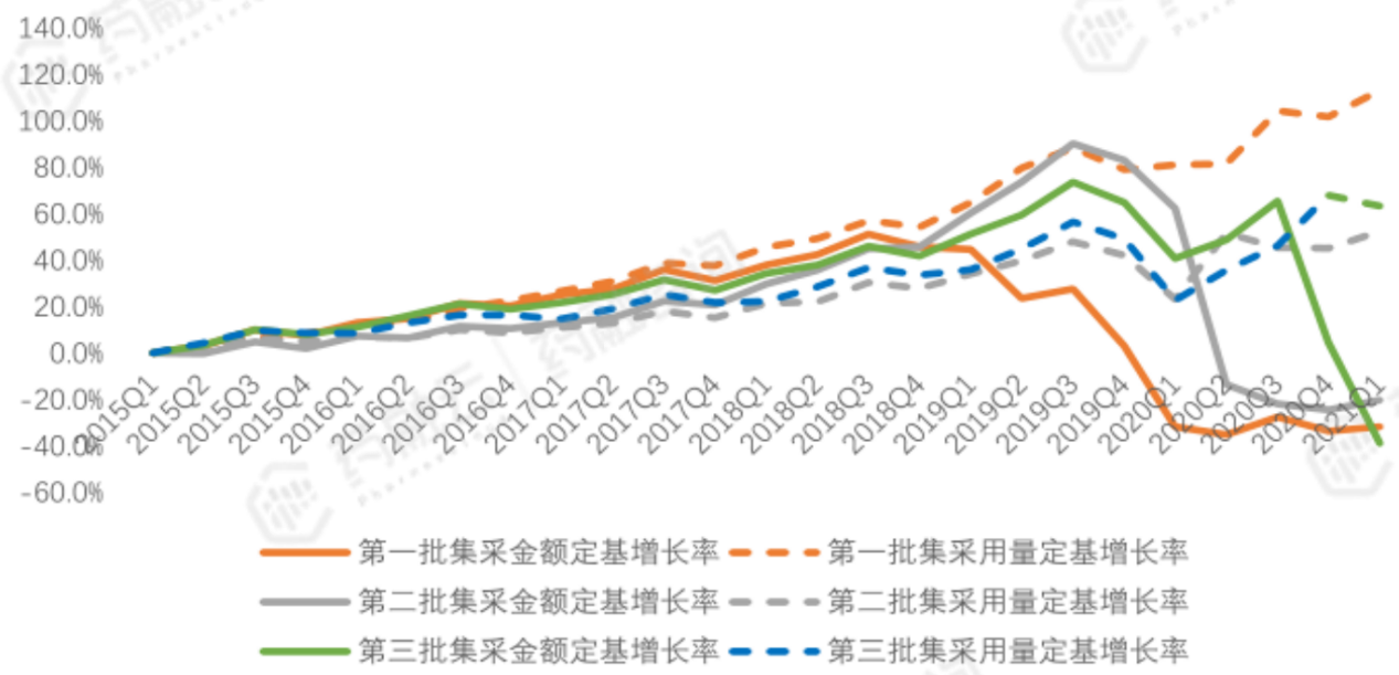 《医保药品管理改革进展与成效蓝皮书》显示,带量采购的制度设计实现了量升价降的效果,2021年一季度与2015年相比,第一批国家集采药品的用量增长了3.5倍,药品金额减少了3.6%,由此催生更多原料药需求。