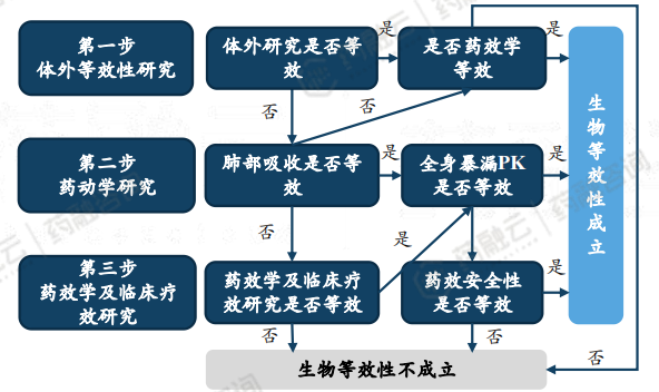 (2)EMA评价吸入制剂仿制产品生物等效的阶梯式逐步方法