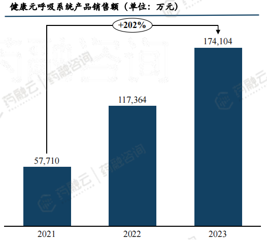 2023年,健康元呼吸系统产品销售额17.41亿元,相较于2021年增长202%。