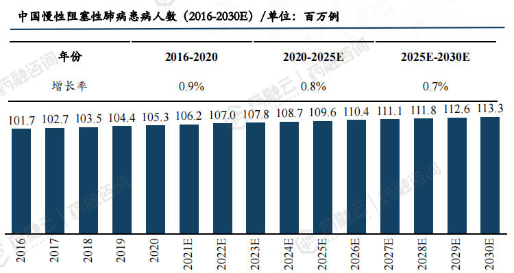 慢性病是严重危害我国居民健康的一类疾病,呼吸系统疾病是典型的慢性病。呼吸系统疾病与空气污染、吸烟等密切相关,慢性呼吸疾病在2021年超1.7亿人,预计在2030年将达到1.9亿人。