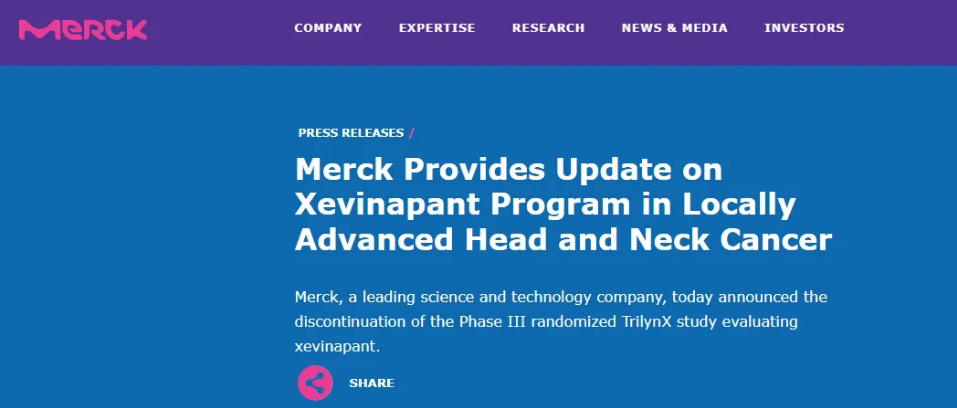 · 德国默克:xevinapant+化放疗治疗晚期头颈部鳞状细胞癌 III期研究