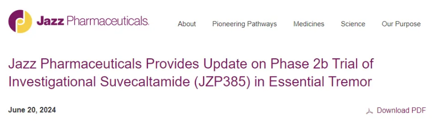· Jazz:suvecaltamide治疗成人原发性震颤 IIb期研究