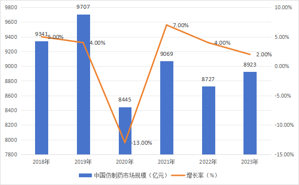 回望仿制药市场的发展轨迹,从一致性评价的全面推行到带量采购的深入实施,我国药品市场在政策的推动下发生了翻天覆地的变化。据《中国仿制药发展报告(2023版)》数据显示,仿制药市场在经历了2019年的高峰后,虽受2020年疫情短暂冲击而有所缩减,但迅速稳回升,2021至2023年间稳定在9000亿元左右,市场潜力可期。