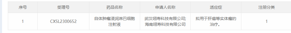 2023年12月18日,武汉翊寿科技和海南翊寿科技联合申报的1类新药“自体肿瘤浸润淋巴细胞注射液”(受理号:CXSL2300652)获批临床,拟开发用于肝癌等实体瘤的治疗。